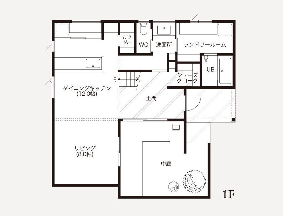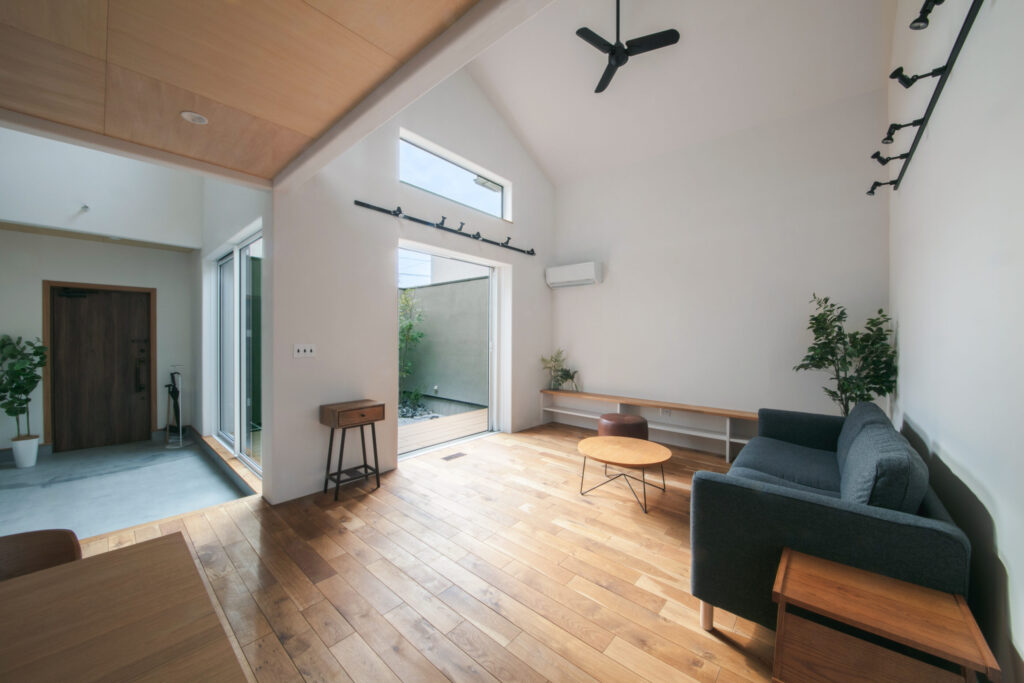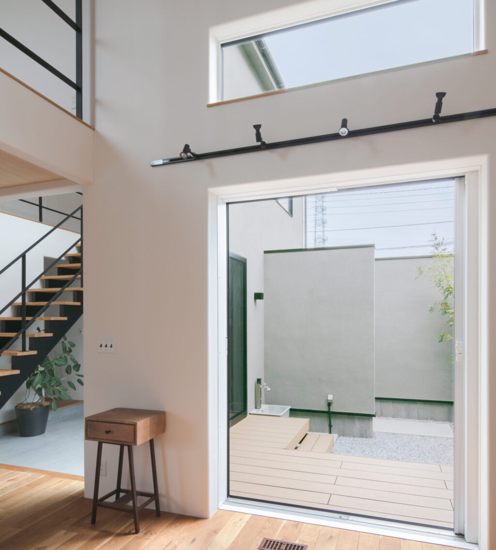 玄関土間・リビング・中庭がひと続きに。