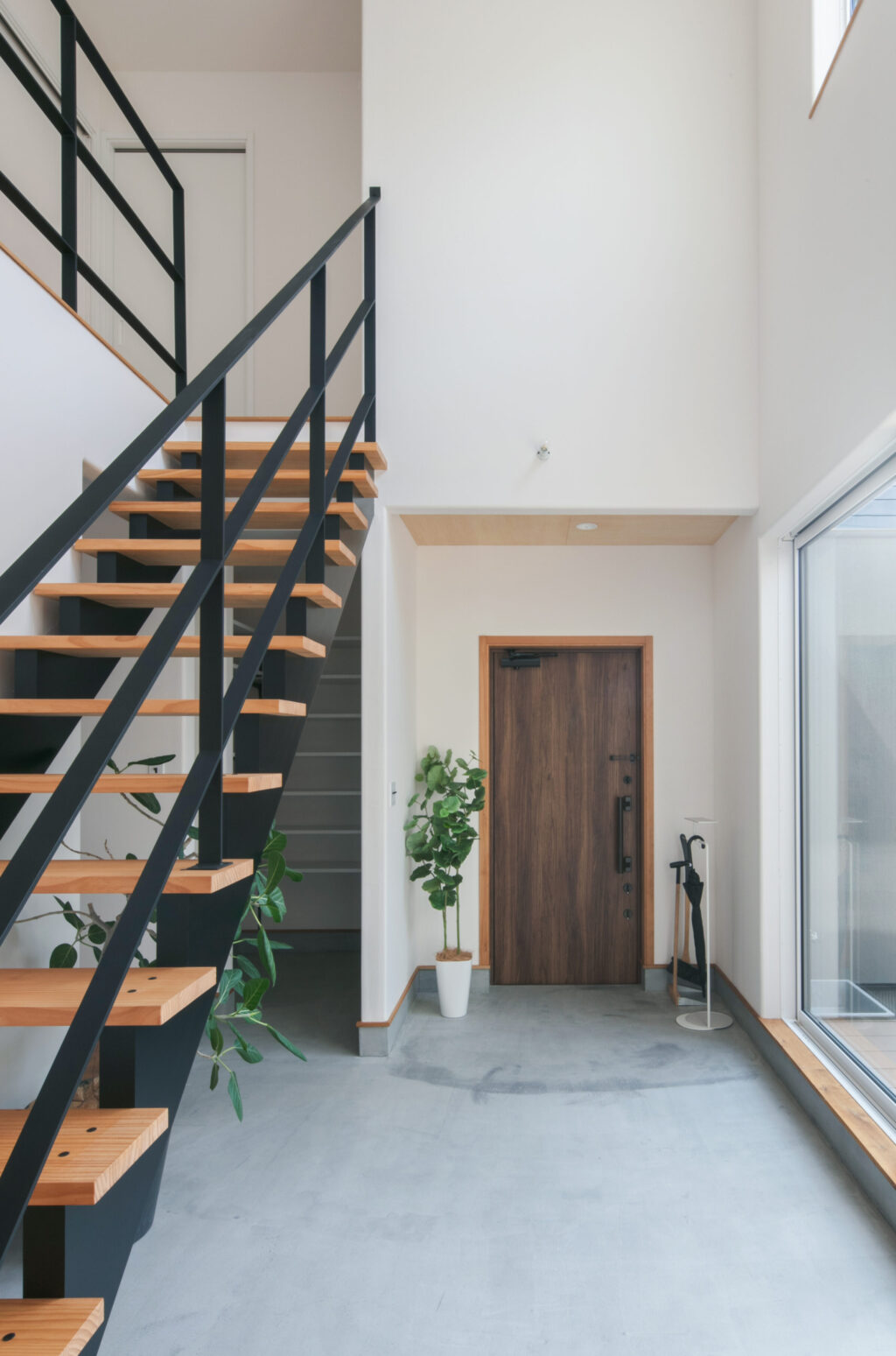 開放感のある広い吹き抜けの玄関土間。